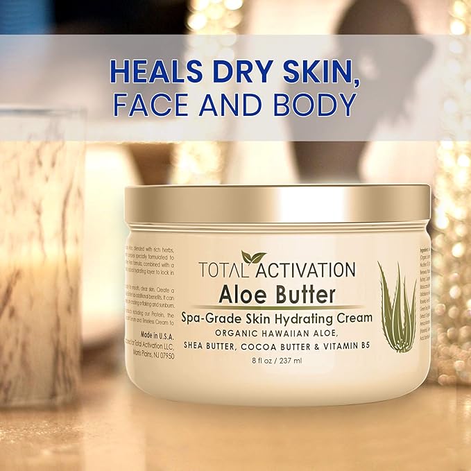 Total Activation Large 8 oz Hawaiian Aloe Vera Cream for Face, Moisturizer to use Day or Night, Anti Wrinkle Aloe Vera Lotion for Skin, Sunburn Relief, and Dry Skin