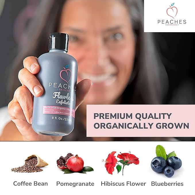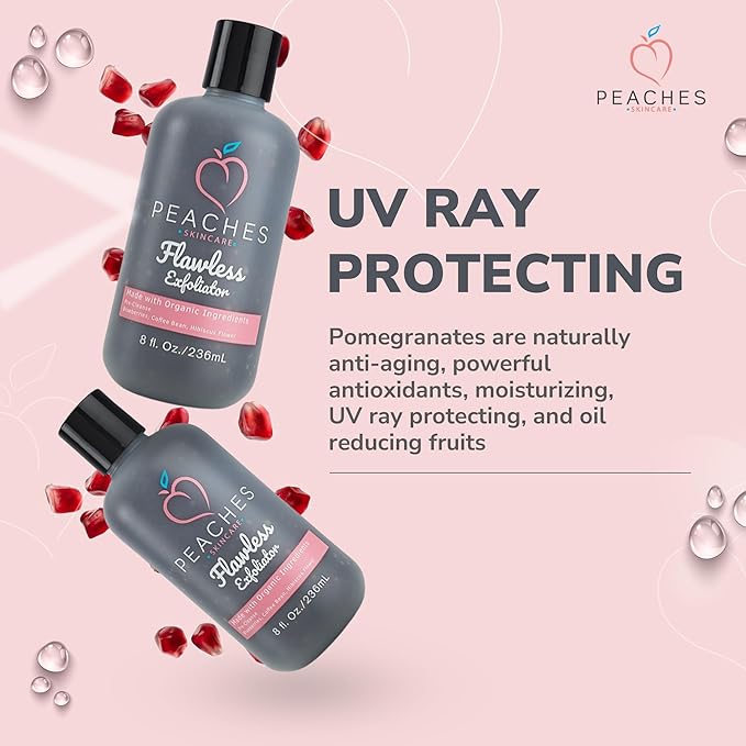 - Facial Exfoliator - Deeply cleanse and exfoliate your skin by using the Peaches’ Exfoliating Face Scrub. This 8 oz bottle of face exfoliant is created from ingredients that allow oxygenation and cleansing of all skin types.
