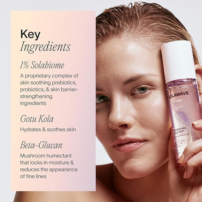 - A dermatologist tested and petroleum free mist with Solabiome, a microbiome-nourishing and skin-optimizing synbiotic complex.