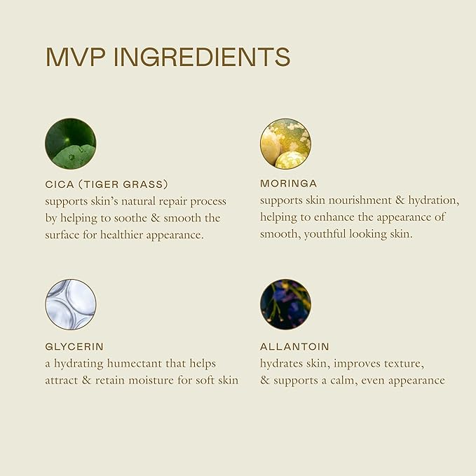 - THOUGHTFUL BLEND FOR A FRESH FINISH: The combination of moringa, Allantoin, and Kalahari Melon supports your skin without overwhelming it. The formula helps lift buildup from the day while working as a facial cleanser that supports clear, healthy-looking skin.