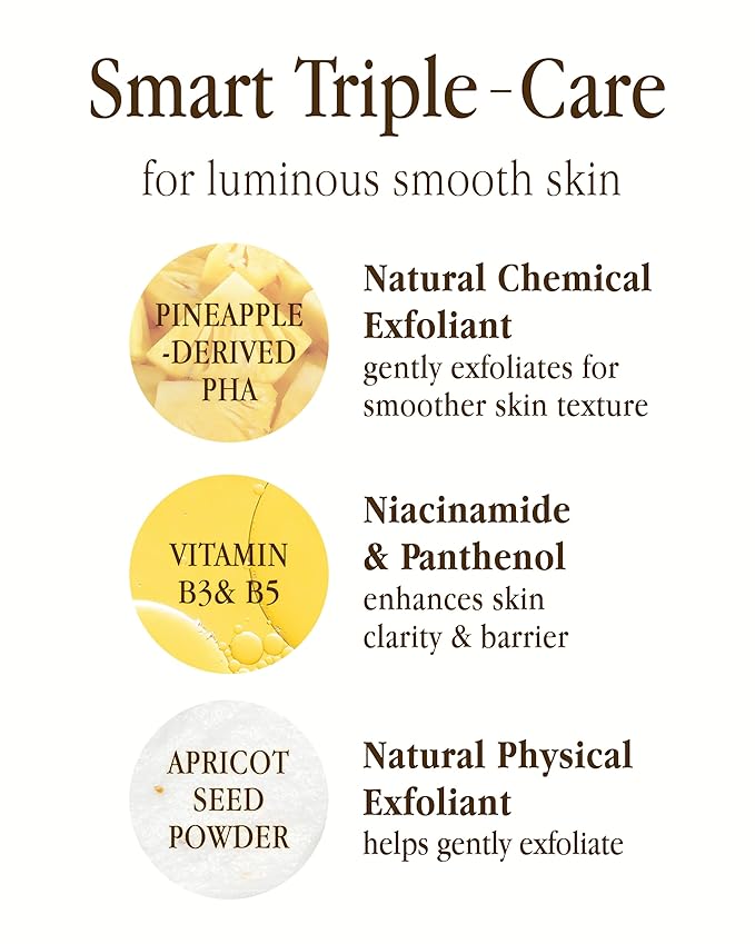 - FARM RX PINEAPPLE PLUS PHA SCRUB CLEANSER (200ml/6.7fl oz) - Indulge in a luxurious cleansing experience with this scrub cleanser, meticulously crafted with micro-sized Apricot Seed Powder and a rich lather, ensuring thorough yet gentle exfoliation for a refreshed complexion.