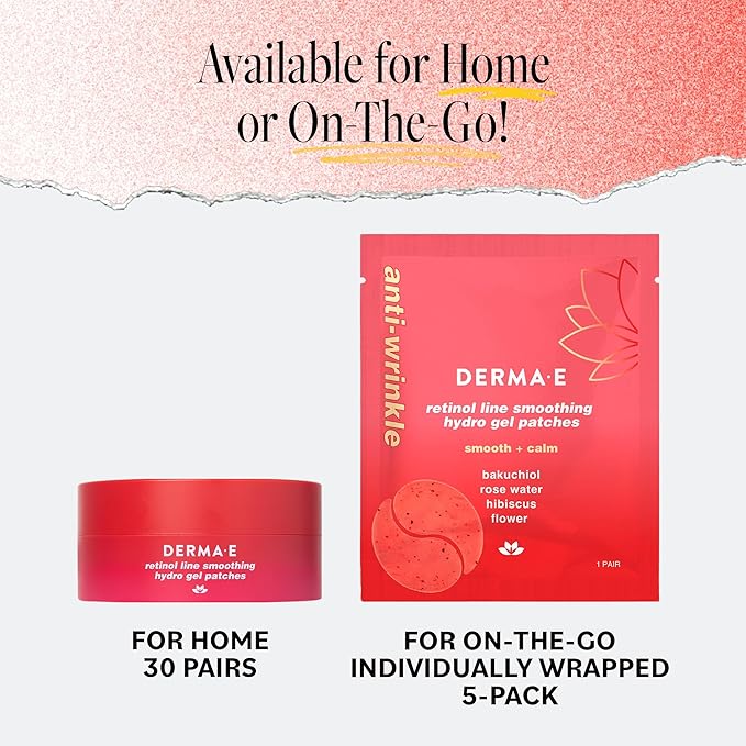 - EYE PATCHES FOR LINES & WRINKLES: DERMA E Retinol Line Smoothing Hydro Gel Patches are dermatologist-recommended to target wrinkles without irritation, with a proprietary blend of Retinol+Bakuchiol. Designed for adult women & men with busy lifestyles
