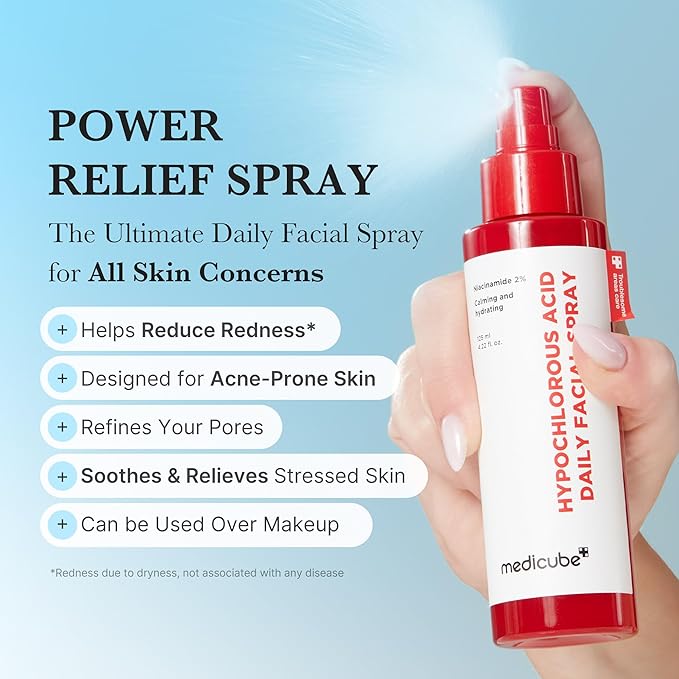 - Daily Power Soothing Spray - This Hypochlorous Acid Spray can be used daily and can quickly soothe and purify your skin, for a clearer glow and refreshing finish.