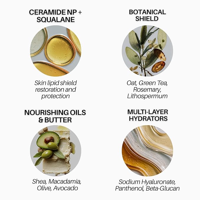 - BOTANICAL OILS & ANTIOXIDANTS: Meadowfoam seed, avocado, macadamia and olive oils with green tea, oat and rosemary extracts nourish, protect and defend against environmental stressors