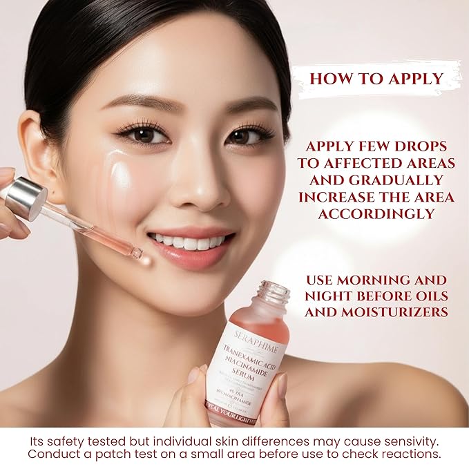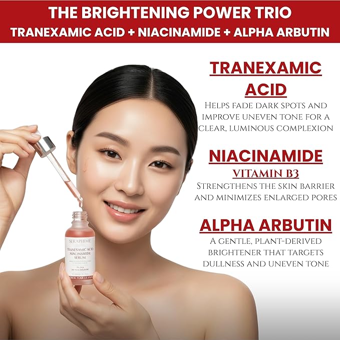 - ADVANCED DISCOLORATION CORRECTING FORMULA: Seraphime’s tranexamic acid serum with 4% TXA targets the look of dark spots, dullness, and uneven tone to reveal a brighter, more radiant complexion. Hyperpigmentation serum with 4% Tranexamic acid (TXA) with 10% Niacinamide.